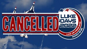 Feb. 16, 2022 Luke Days 2022 Cancelled The 56th Fighter Wing command team has decided to cancel the upcoming Luke Days airshow event, previously scheduled for March 19-20, 2022.