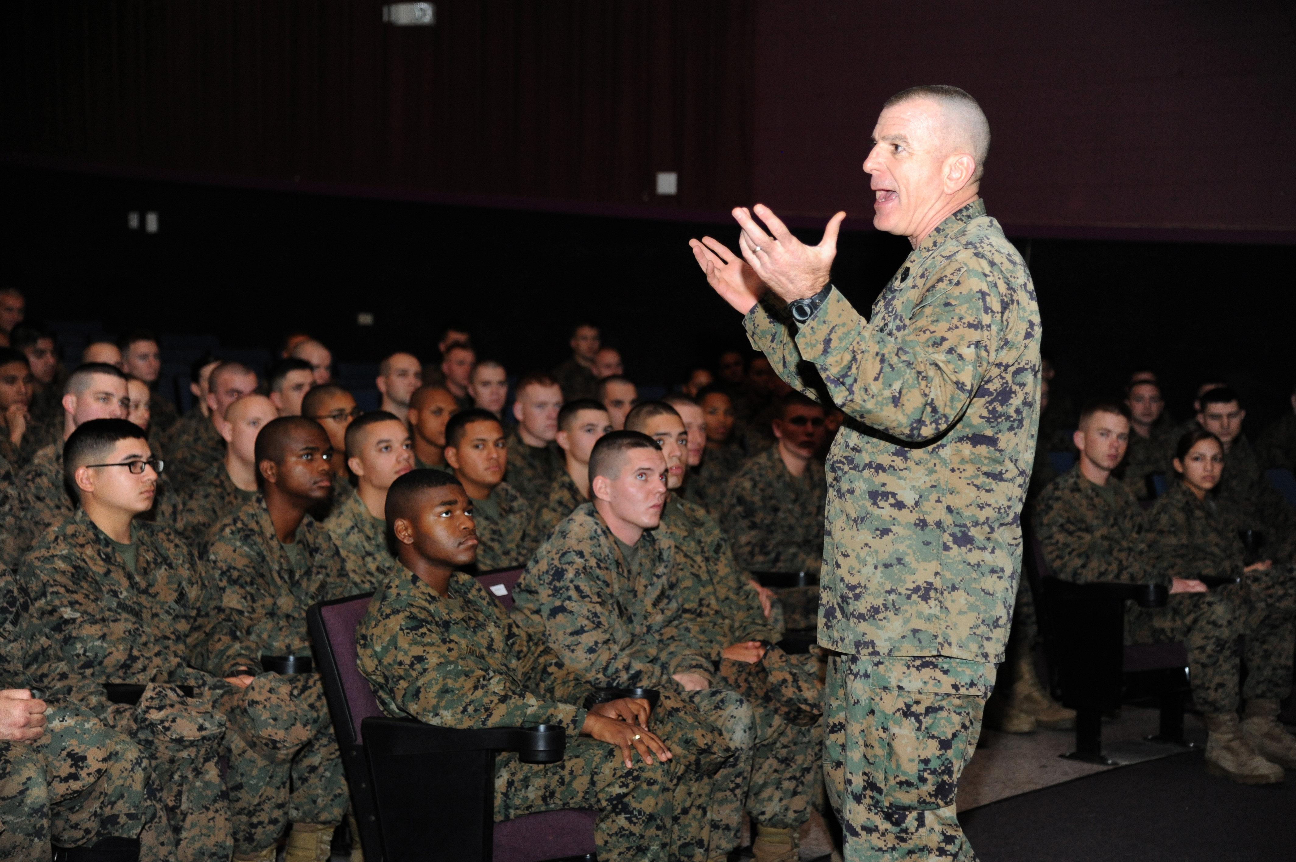 SEAC shares joint vision with Keesler Published Jan. 18, 2013 By Senior Airman Heather Heiney 81st Training Wing Public Affairs KEESLER AIR FORCE BASE, Miss. -- Once a person dons the uniform of their branch of service it can be easy to let their identity as an Airman, Marine, Soldier or Sailor cloud the fact that they are a member of a larger United States military. Keesler Airmen had the opportunity to be reminded of the bigger picture Jan. 16 when Marine Sgt. Maj. Bryan Battaglia, senior enlisted advisor to the Chairman of the Joint Chiefs of Staff and the highest-ranking enlisted member of the U.S. military, visited Keesler Air Force Base, Miss. During the SEAC's visit he had the opportunity to acquaint himself with Keesler's people, mission and contribution to that greater military picture. "I've seen a lot of good things on this base in a short amount of time, even some things that I'm going to take back up to D.C. with me," Battaglia said. He also said his favorite part of the visit was meeting Airmen and listening to the pride they have for what they do for the 81st Training Wing. "I love having opportunities to approach service members and listen to you talk about your jobs, there's nothing better or more refreshing or more rewarding for me than to do that," Battaglia said. Keesler trains Airmen across a spectrum of specialties and also hosts Marines and Sailors for joint weather training. "Our non-prior service Airmen that are training here at Keesler Air Force Base are our top priority, training is what we do, it's our mission and we're very proud of it," Chief Master Sgt. Angelica Johnson, 81st TRW command chief, said. "You never have a rank that makes you exempt from learning," Battaglia said. "If I don't practice my skill, my art, it becomes perishable. The lack of proficiency brings on irrelevancy, so it's vitally important that we continue to train and educate." A few benefits of a joint training environment, like that of Keesler's weather school, are that it allows service members to share different ideas, thoughts and practices. "The joint environment provides us the opportunity to set our parochialism and our egos aside, listen to some other thoughts and ideas that our peer group may have and inject them where we can to make our military more efficient and effective," the SEAC said. The SEAC also held and enlisted call at the Welch Theater to reiterate the CJCS' four priorities, his own key themes and total force fitness. The Chairman's four priorities are: achieve our national objectives in the current conflicts, develop joint force 2020, keep faith with our military family and renew our commitment to the profession of arms. Battaglia's key themes parallel those of the CJCS: bridging the basics by enhancing core competencies, preserving readiness and strengthening our commitment to the total force. "If they're the Chairman's priorities, they should be our priorities," the SEAC said. "That's why we're all here as members of this armed force, that's why we all serve." He also said he uses the oath of enlistment, which is identical for all enlisted members no matter what their rank or branch of service, to renew his commitment to the armed forces and remember why he serves. "Whether you know it or not, you're willing to give your life for your nation. Think about that, it's pretty powerful," Battaglia said. "And you volunteered. That says a lot about your character." If he could give one piece of advice to enlisted members, Battaglia said it would be the same advice he received early in his career to do his job to the best of his ability and follow orders. "I found that those two golden rules helped me along the way and probably played a significant impact as to why I'm sitting in this position today," he said.