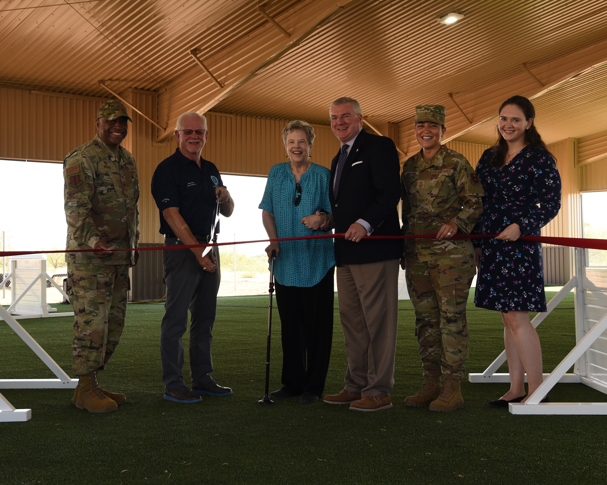 Goodfellow receives $5.2 million quality of life upgrade from DEAAG Published Aug. 4, 2022 By Senior Airman Abbey Rieves 17th Training Wing Public Affairs GOODFELLOW AIR FORCE BASE, Texas -- Senior leaders from Goodfellow Air Force Base and civic leaders from the City of San Angelo and across Texas rallied together in celebration of a $5.2 million infrastructure upgrade, from a Defense Economic Adjustment Assistance Grant awarded by the state of Texas, Aug. 3. The DEAAG program funded five new infrastructures across the base. They included: a covered outdoor military working dog structure, a fire vehicle pad, an outdoor covered Alpha warrior pad, a new joint response sampling trailer and an astroturf physical training pad. These new infrastructures accelerate change by vastly improving service members’ quality of life while also modernizing resources to facilitate mission achievement. The MWD pad unites the expert training that 17th Security Forces Squadron MWD handlers conduct with the mission demands of deployed locations. These modernized training facilities enhance the lethality of MWD assets, by facilitating more training time within a sheltered facility. The relentless civic leaders’ efforts helped secure the grant, a testament to the strong and decades long relationship Goodfellow has with the local community. The base could not have received the funding without the help of San Angelo civic leaders. “The generosity of the city, the county, and the great state of Texas, really have a huge impact on the quality of life and what we can execute here,” said Col. Matthew Reilman, 17th Training Wing commander. “Thank you for this investment. The entire community collectively shapes the defense of our nation.” In addition to the local community advocating for the DEAAG program, Goodfellow provides economic stimulus for the community. Goodfellow supports nearly 24,000 jobs and has a total economic impact of $580 million in Tom Green County. “All great things happen when people come together and join hands to improve this community,” said City of San Angelo Mayor, Brenda Gunter. “We are lucky here in San Angelo because we have a community that believes and understands the values and importance of Goodfellow Air Force Base.” Through innovative approaches and strong community relationships, Goodfellow graduates over 14,000 intelligence and fire protection service members each year and a supports a population of over 12,000.