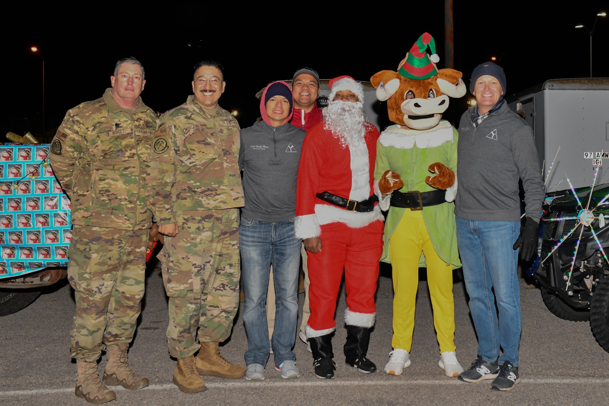 “It just wouldn't be without CE”: 97 CES hosts third annual AAFB holiday parade Published Dec. 16, 2022 By Airman 1st Class Miyah Gray 97th Air Mobility Wing Public Affairs ALTUS AIR FORCE BASE, Okla. -- Airmen from the 97th Air Mobility Wing participate in a holiday parade at Altus Air Force base, Oklahoma, Dec. 13, 2022. More than 1,500 Airmen and families observed the event. (U.S. Air Force photo by Airman 1st Class Miyah Gray)