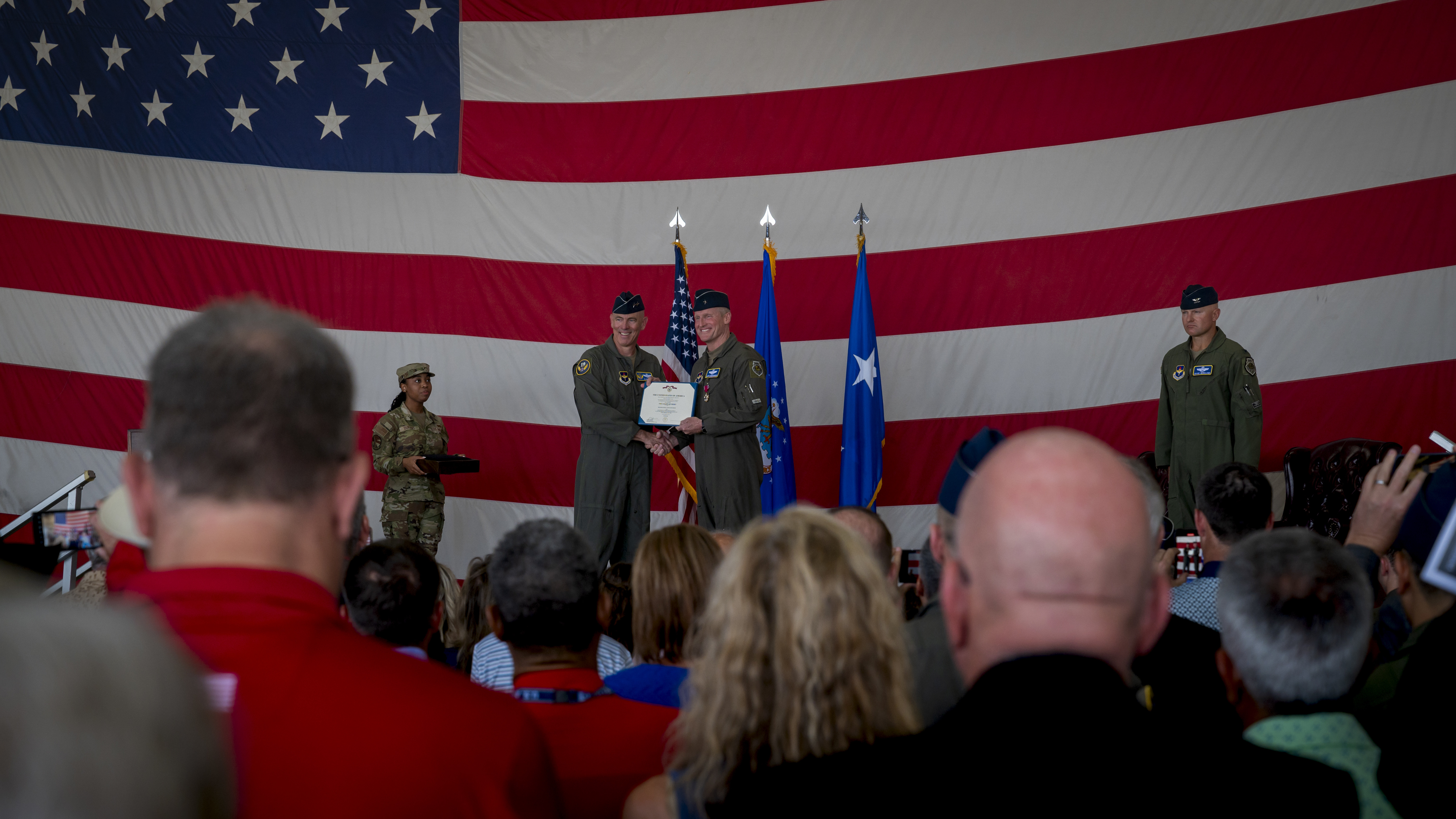 56th FW welcomes new commander Published July 2, 2024 By Senior Airman Dominic Tyler 56th Fighter Wing Public Affairs LUKE AIR FORCE BASE, Ariz. -- U.S. Air Force Brig. Gen. Jason Rueschhoff, 56th Fighter Wing commander, relinquished command to Col. David Berkland, during a Change of Command ceremony, July 1, 2024, at Luke Air Force Base, Arizona. Berkland is a command pilot with more than 3,800 flying hours, including over 900 combat hours. He arrived at Luke AFB following a position as the chief of staff of the Headquarters Pacific Air Forces at Joint Base Pearl Harbor-Hickam, Hawaii, and is selected for promotion to brigadier general. Berkland earned his commission in 1998 from Officer Training School after graduating from Augustana University. He performed duties as an F-16 Fighting Falcon instructor pilot and weapons officer, and flew combat missions in Operations SOUTHERN WATCH, NORTHERN WATCH, IRAQI FREEDOM, and FREEDOM’S SENTINEL. Maj. Gen. Clark Quinn, 19th Air Force commander assigned to Joint Base San Antonio-Randolph, Texas presided over the ceremony. “Luke AFB is a perfect example of the Air Education and Training Command mission done right,” said Quinn. “Ox (Rueschhoff) and his incredible team here lead about 7,500 Total Force Airmen. Ox leaves the 56th to the exceptionally capable Ajax (Berkland). You have inherited a team of motivated and innovative Airmen, and I charge you to continue empowering that team to forge the next generation of our nation’s warriors, to ensure readiness and develop Airmen with the competencies to win against any competitor anytime, anywhere.” Before relinquishing the guidon to his successor, Rueschhoff addressed the group commanders and expressed his gratitude to the 56th FW. “Our people are our foundation,” said Rueschhoff. “Thank you to the leaders and group commanders for keeping your priorities straight with knowing what our most important asset is. I am extremely grateful to have worked with the men and women here at Luke. Thank you all for putting the time, effort, and energy into the mission every single day.” After the exchange of the ceremonial guidon, Berkland thanked everyone in attendance, as well as those who supported him throughout his career. Before concluding the ceremony, he addressed the 56th FW and explained what they should expect of his leadership. “I am honored and humbled to take this guidon today,” said Berkland. “But as to your expectations of my command, I’m going to provide you with my commander’s intent and then I’m going to get out of your way. I will let you continue to do what you already do to support, defend, and deliver high-end airpower at the 56th FW. Thank you all, and let’s get back to work.”