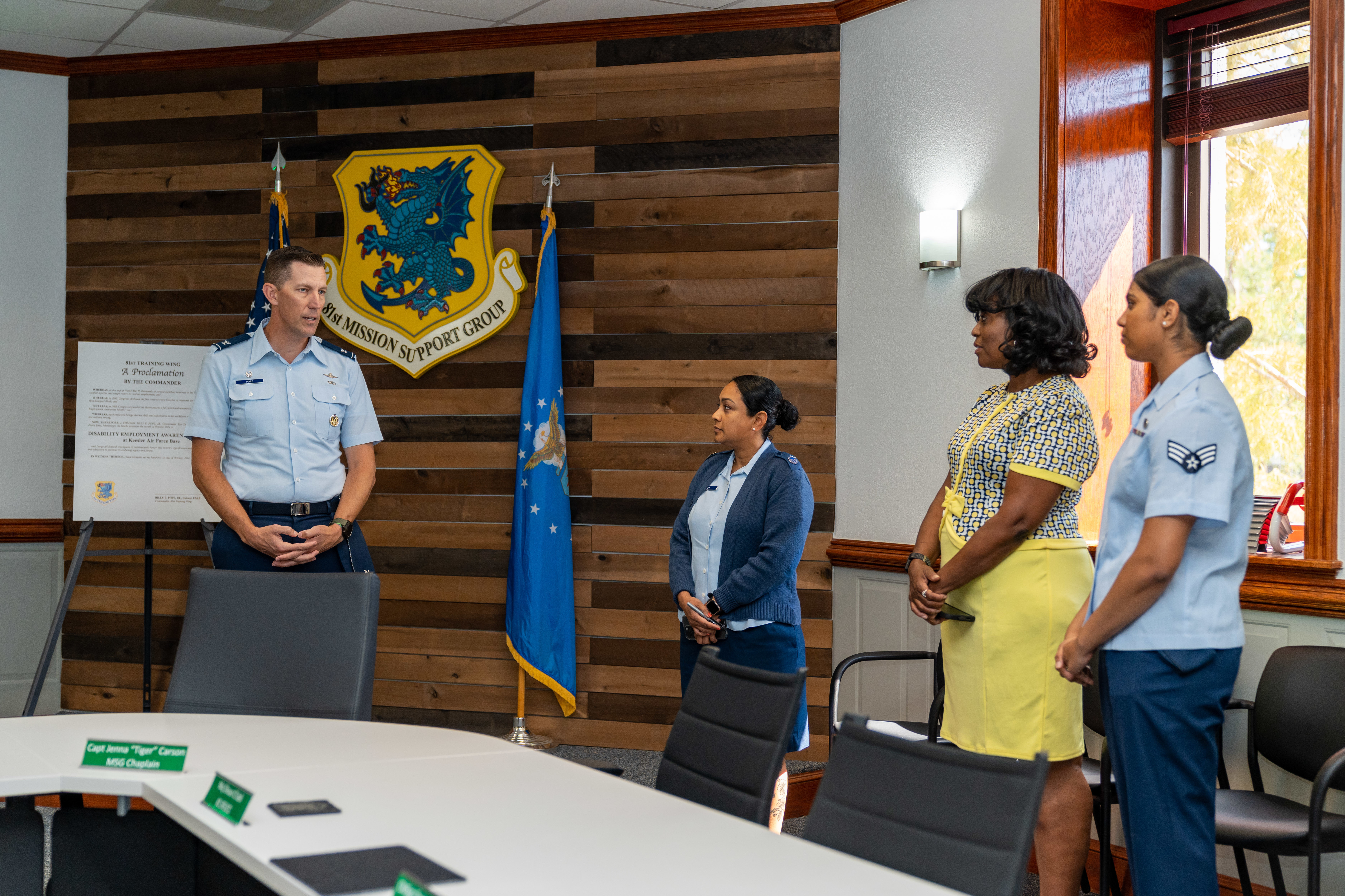2024 National Disability Employment Month U.S. Air Force Logo Oct. 1, 2024 2024 National Disability Employment Month U.S. Air Force Col. Billy Pope, Jr., 81st Training Wing commander, gives his remarks during the National Disability Employment Awareness Month proclamation signing at Keesler Air Force Base, Mississippi, Oct. 1, 2024. NDEAM celebrates the contributions of America’s workers with disabilities past and present and showcases supportive, inclusive employment policies and practices that benefit employers and employees. (U.S. Air Force photo by Andrew Young) Details Download 2024 National Disability Employment Month U.S. Air Force Col. Billy Pope, Jr., 81st Training Wing commander, signs the National Disability Employment Awareness Month proclamation at Keesler Air Force Base, Mississippi, Oct. 1, 2024. NDEAM celebrates the contributions of America’s workers with disabilities past and present and showcases supportive, inclusive employment policies and practices that benefit employers and employees. (U.S. Air Force photo by Andrew Young) Details Download 2024 National Disability Employment Month U.S. Air Force Col. Billy Pope, Jr., 81st Training Wing commander, signs the National Disability Employment Awareness Month proclamation at Keesler Air Force Base, Mississippi, Oct. 1, 2024. NDEAM celebrates the contributions of America’s workers with disabilities past and present and showcases supportive, inclusive employment policies and practices that benefit employers and employees. (U.S. Air Force photo by Andrew Young) Details Download 2024 National Disability Employment Month U.S. Air Force Col. Billy Pope, Jr., right, 81st Training Wing commander, poses for a group photo with members from the National Disability Employment Awareness Month committee after the proclamation signing at Keesler Air Force Base, Mississippi, Oct. 1, 2024. NDEAM celebrates the contributions of America’s workers with disabilities past and present and showcases supportive, inclusive employment policies and practices that benefit employers and employees. (U.S. Air Force photo by Andrew Young) Details Download