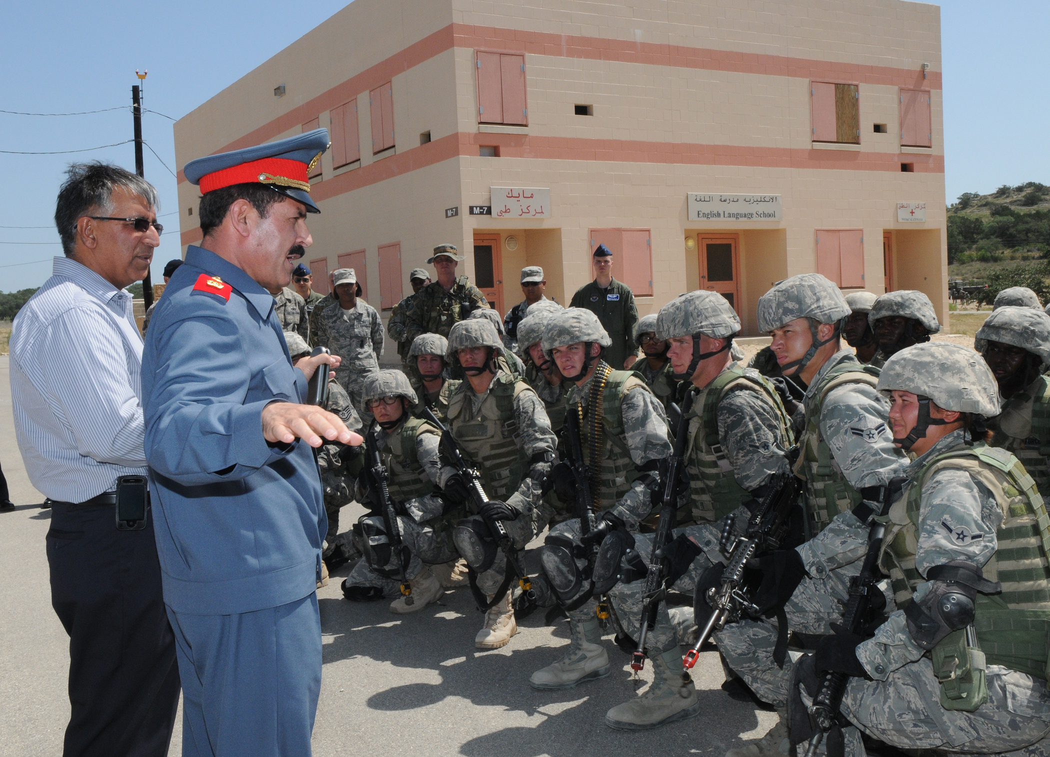 Maj. Gen. Mohammad Dawran, Afghan national air army corps commander, speaks to security forces trainees at the Military Operations on Urban Terrain training facility at Camp Bullis, Texas . The general’s visit served to strengthen the training partnerships between the two air forces. (U.S. Air Force photo by Richard McFadden).