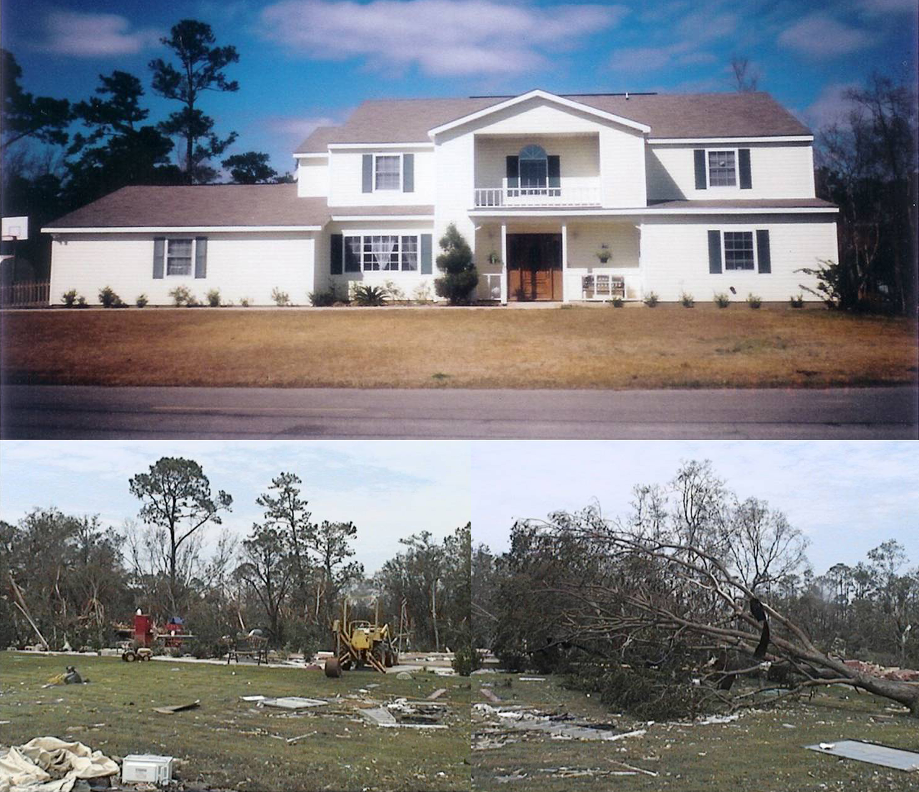 Before and after Hurricane Katrina struck the Bocek home in Langley Point. (Courtesy photo)