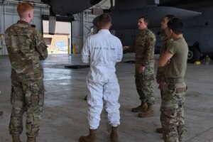 U.S. Air Force Staff Sgt. Rhio Rendon-Rivera, Senior Airman Rodrigo Jimenez, and Airman 1st Class Logan Ward, 62nd Aircraft Maintenance Unit maintainers, load an AIM-9X Sidewinder missile as part of the 56th Maintenance Group’s Weapons Load Crew competition at Luke Air Force Base, Arizona, July 22,