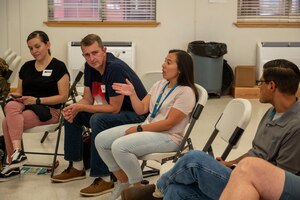 Airmen from the Steel Talons Honor Guard depart after presenting the colors during the 2024 Holloman Air Force Ball at Holloman Air Force Base, New Mexico, Nov. 2, 2024. The Air Force Ball is an annual event celebrated at different Air Force bases that brings service members, families and community