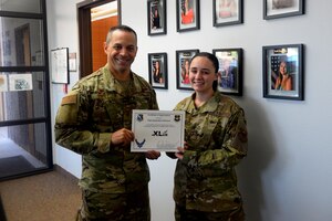 Staff Sgt. Samantha Scheinost, 47th Operations Support Squadron Host Aviation Resource Management NCO in charge, was chosen by wing leadership to be the “XLer” of the week, for the week of July 29, 2019, at Laughlin Air Force Base, Texas.The “XLer” award, presented by Col. Lee Gentile, 47th Flying